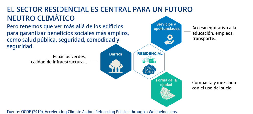 Los edificios generan el 6 % de las emisiones directas de gases de efecto invernadero de todo el mundo y un 12 % adicional de estas emisiones por el uso de la electricidad. El sector de la vivienda es responsable de casi dos terceras partes de las emisiones de los edificios, la mayor parte de las cuales deriva de la demanda de energía para calefacción, agua caliente, refrigeración y cocinado de los alimentos. También es preciso reducir las emisiones procedentes de todos los sectores de uso final. Deben reforzarse las políticas encaminadas a mejorar la calidad de los edificios, lo que incluye aislamientos y materiales respetuosos con el medio ambiente.