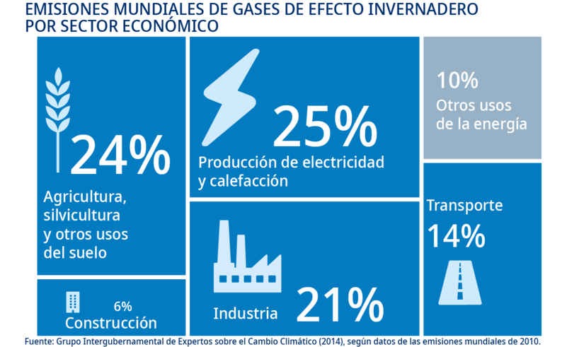 Sabemos que la agricultura, la construcción, la electricidad, la industria y el transporte son las principales fuentes de emisiones de gases de efecto invernadero.