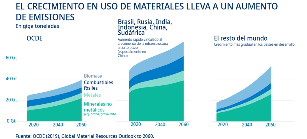 Deben redoblarse los esfuerzos para encontrar y poner en práctica soluciones, ya que el uso mundial de productos básicos como hierro y acero, cemento, aluminio, vidrio, cerámica, productos químicos, pasta y papel y productos petroquímicos se duplicará de aquí a 2060. Los procesos de extracción y explotación minera también conllevan una alta intensidad energética, problema que es preciso afrontar.