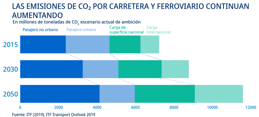 Las emisiones procedentes del transporte por carretera, ferroviario, aéreo y marítimo han crecido más rápido que en cualquier otro sector en los últimos 50 años. Hoy representan aproximadamente el 14 % de todas las emisiones mundiales de dióxido de carbono y suponen el 24 % de todas las emisiones de dióxido de carbono producidas por el ser humano.